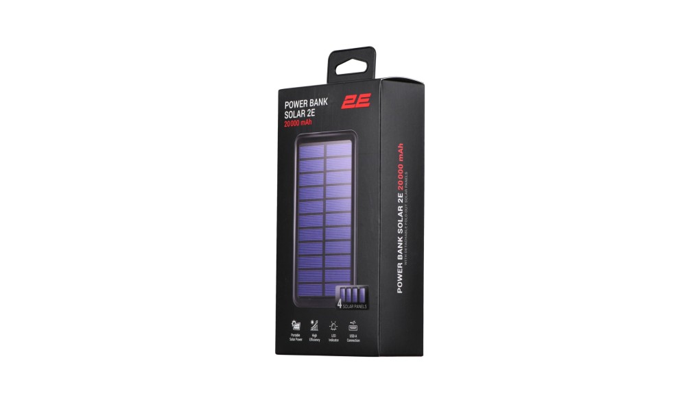 Внешний аккумулятор 2E Power Bank Solar 20000mAh Black