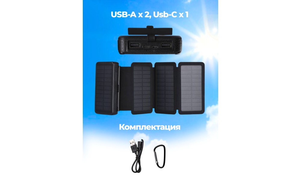- Солнечная зарядка: Встроенная панель позволяет подзаряжать устройство на природе. Магнитная съемная конструкция повышает эффективность поглощения света.