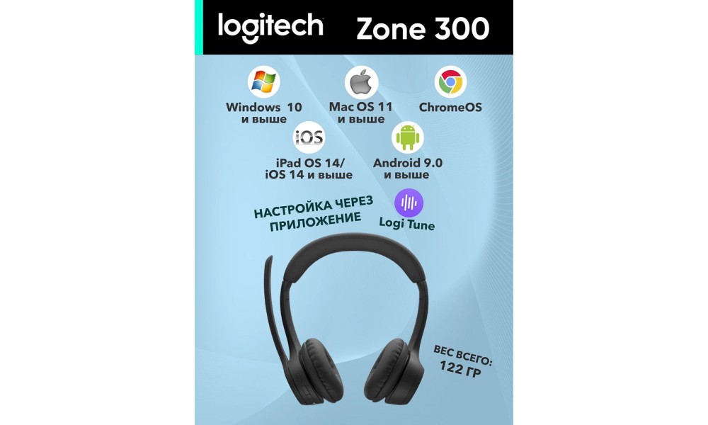 Гарнитура обеспечивает до 16 часов непрерывных разговоров, что позволяет использовать её весь рабочий день без подзарядки. Logitech Zone 300 — это надёжный и стильный инструмент для общения, продуктивности и максимального комфорта в каждом дне.
