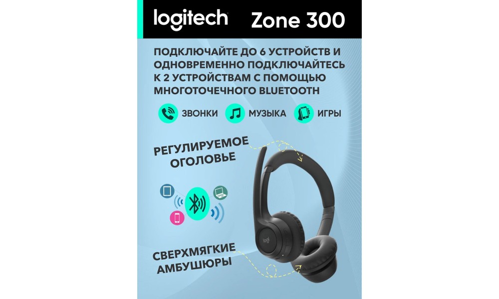 Logitech Headset Zone 300 — это сочетание стиля, комфорта и продуманной технологии, созданное для тех, кто ценит качество звука и удобство в работе. Лёгкие накладные наушники с регулируемым оголовьем и мягкими амбушюрами обеспечивают комфорт даже при длительном использовании, а надёжная конструкция делает гарнитуру идеальной для офисных звонков, онлайн-встреч и прослушивания музыки.