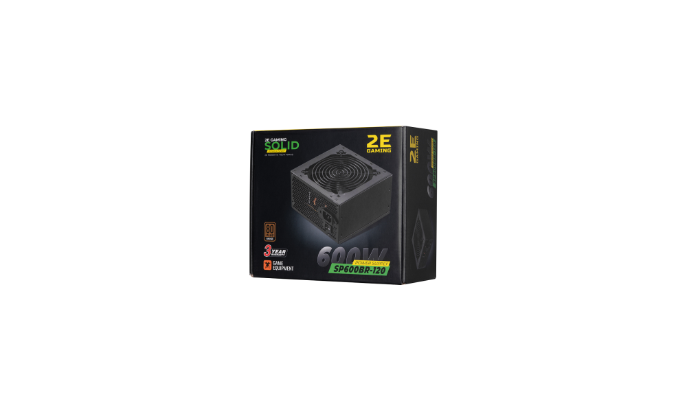 Блок питания 2E GAMING Solid Power (600W) >85% 80+ Bronze 120мм 1xMB 24pin(20+4) 1xCPU 8pin(4+4) 3xMolex 6xSATA 4xPCIe 8pin(6+2)