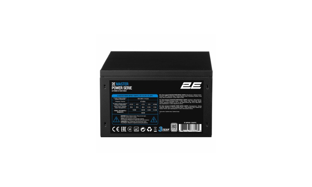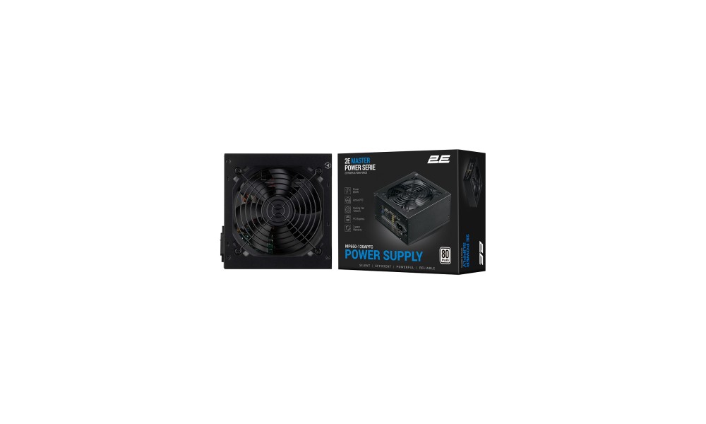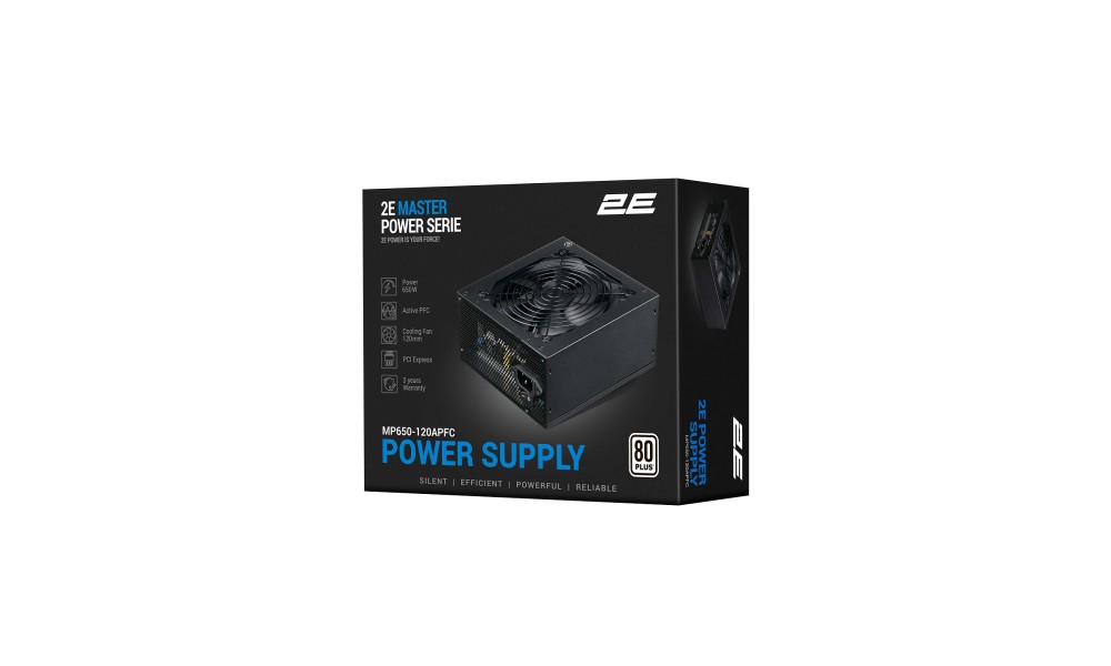 Блок питания 2E Master Power (650W), >80%, 80+ White, 120мм, 1xMB 24pin(20+4), 1xCPU 8pin(4+4), 3xMolex, 5xSATA, 2xPCIe 8pin(6+2)