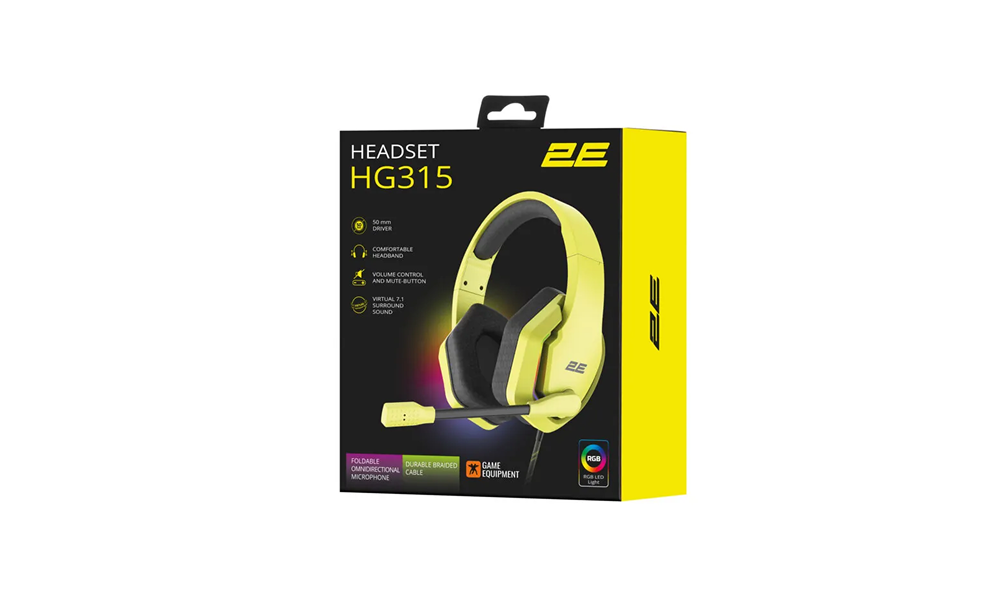 Гарнитура игровая 2E GAMING HG315, 7.1, USB-A, RGB, 2м, жёлтый