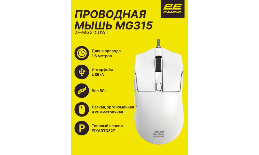 Игровая мышь 2E GAMING MG315, USB-A, до 12 400 DPI, 50 г