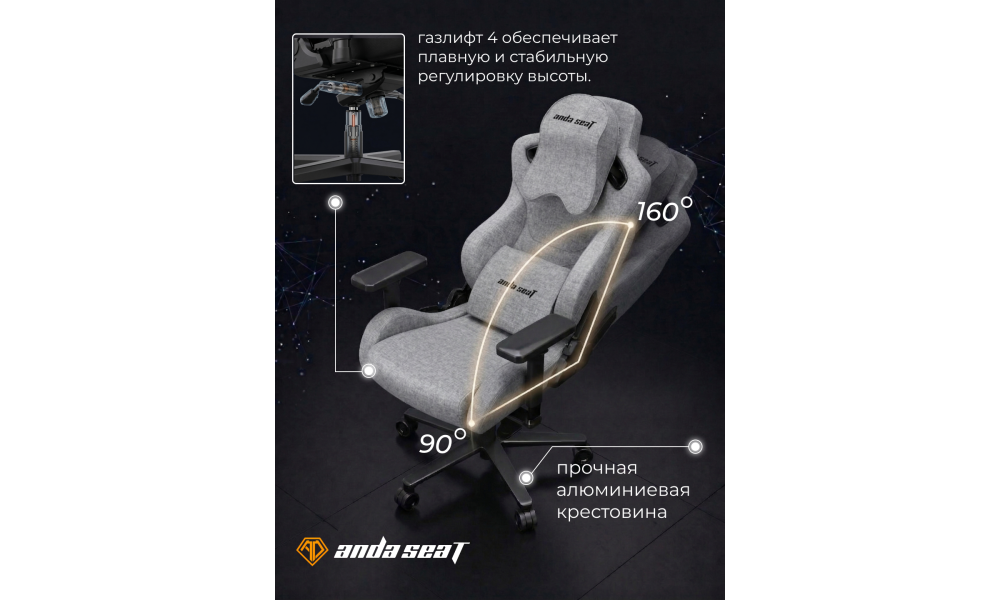 Спинка кресла регулируется в диапазоне от 90° до 160°, что позволяет выбрать оптимальное положение для работы, игр или отдыха. Механизм качания «топ-ган» с возможностью регулировки жесткости и фиксации угла наклона обеспечивает плавное движение и дополнительный комфорт во время длительного сидения. Газлифт 4 класса гарантирует безопасное и стабильное регулирование высоты сиденья, а широкие 4D-подлокотники позволяют настраивать их по высоте, глубине, углу и ширине, снижая нагрузку на плечи и запястья.