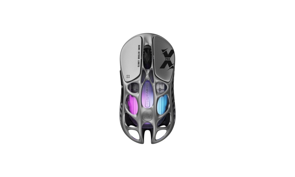 Рама из магниевого сплава толщиной 0,8 мм обеспечивает идеальный баланс прочности и лёгкости, придавая мыши ощущение долговечности и премиального металла, сохраняя при этом лёгкость конструкции. Mercury X Pro весом всего 49 г создана для быстрых и точных движений, не напрягая руку или запястье.