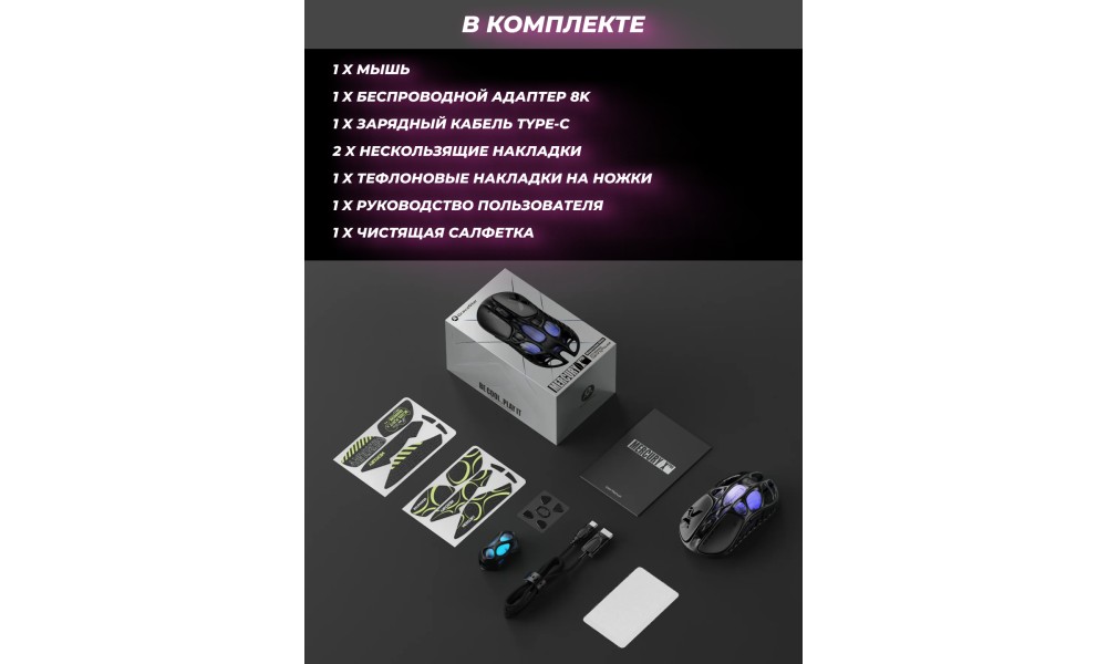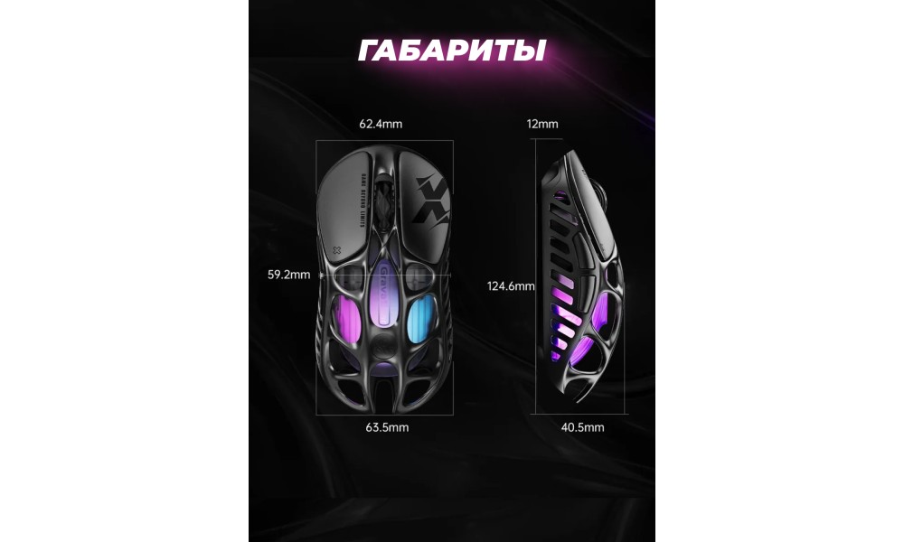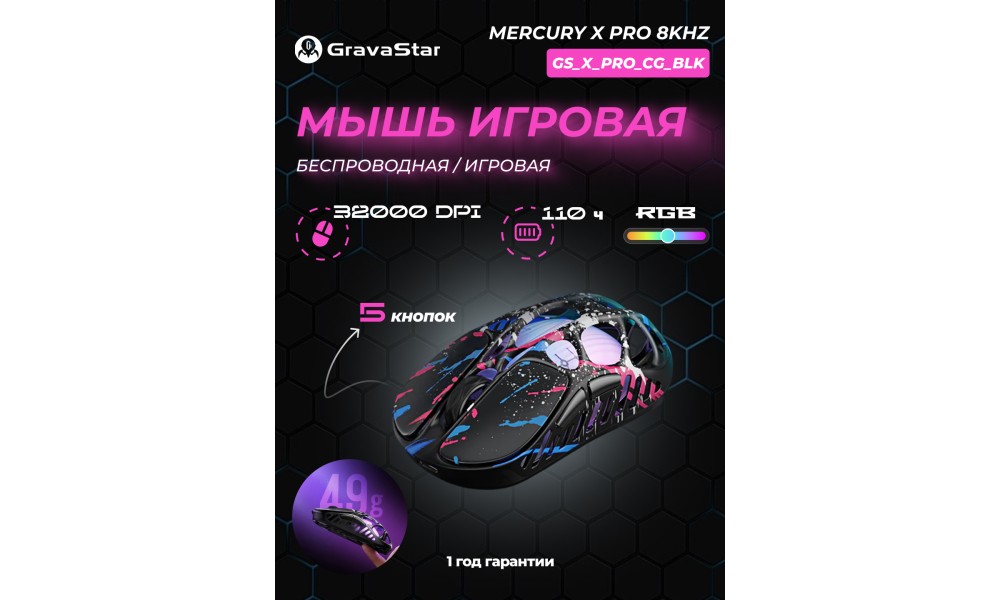 Игровая мышь Gravastar Mercury X Pro, беспроводная/проводная, RGB, 32000 DPI, до 110 часов, 5 кнопок, GS_X_PRO_CG_BLK