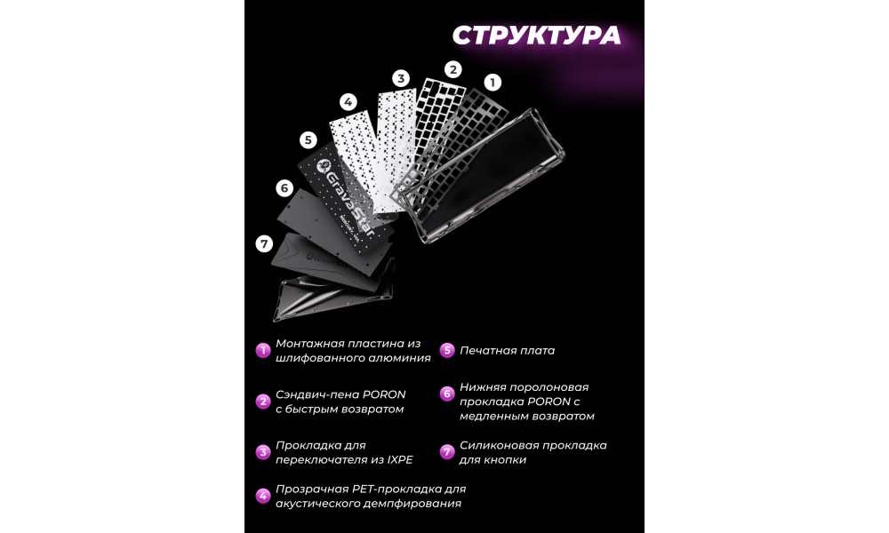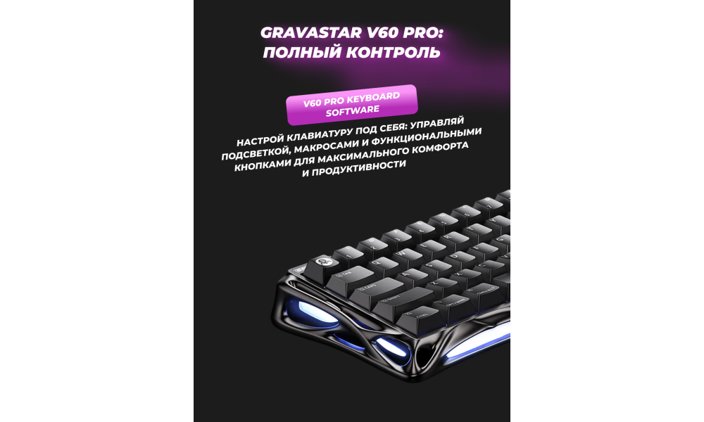 Клавиатура оснащена кастомными переключателями GravaStar Blackcore, работающими на эффекте Холла. Это дает вам полный контроль над каждым нажатием: