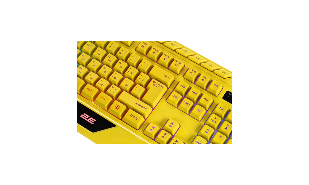 Мембранная игровая клавиатура 2E GAMING KG315 110key, USB-A, EN/RU, RGB, жёлтый