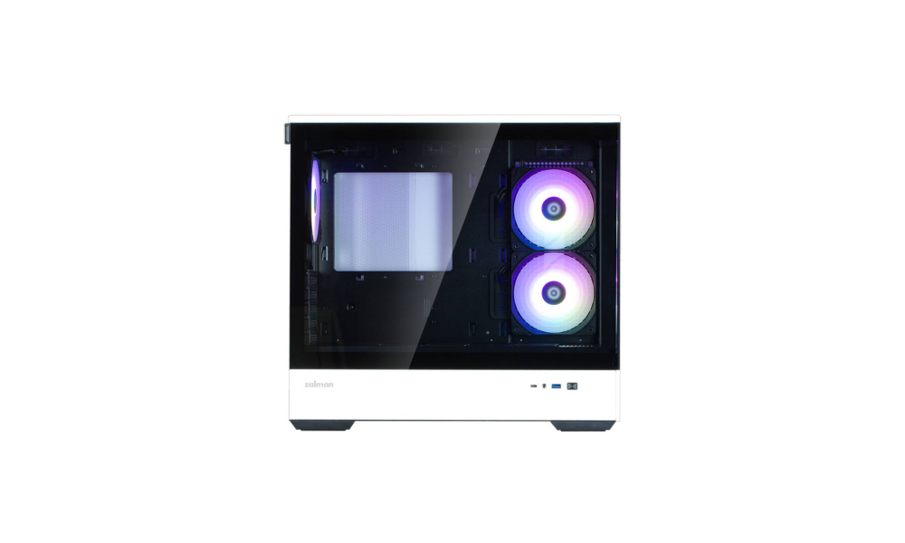 Zalman P30 поставляется с тремя предустановленными 120-мм ARGB вентиляторами. Уникальность модели заключается в использовании реверсивных вентиляторов на боковой панели: они работают на приток воздуха, при этом демонстрируя свою красивую лицевую сторону, а не каркас. Тыл корпуса венчает классический вытяжной вентилятор, создавая оптимальный направленный поток воздуха.
