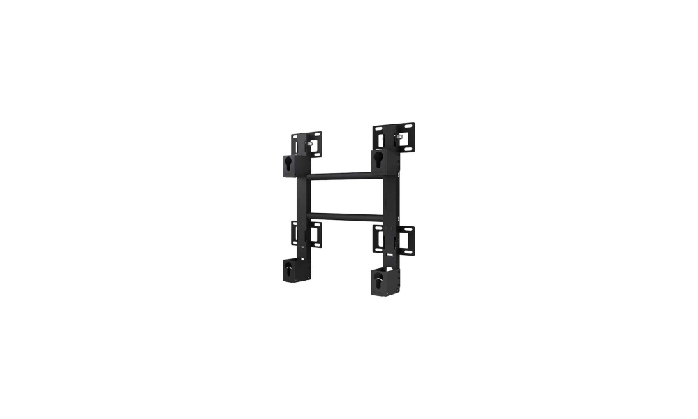 Кронштейн поддерживает установку дисплея как в стандартной альбомной, так и в портретной ориентации, сохраняя симметрию и надежность крепления. Конструкция полностью совместима с дополнительными модулями Samsung (SBB/PIM) и сенсорными накладками, не перекрывая доступ к интерфейсам подключения.