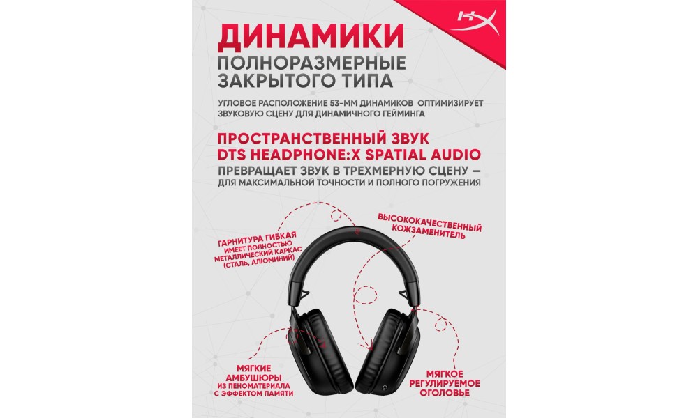 HyperX Cloud III Wireless Black оснащены мощными 53-мм драйверами, которые обеспечивают чистое и насыщенное звучание. Эти драйверы способны воспроизводить широкий частотный диапазон, от глубоких басов до кристально чистых высоких частот. Это делает наушники идеальными как для игр, так и для прослушивания музыки, где важна детализированная передача звука.