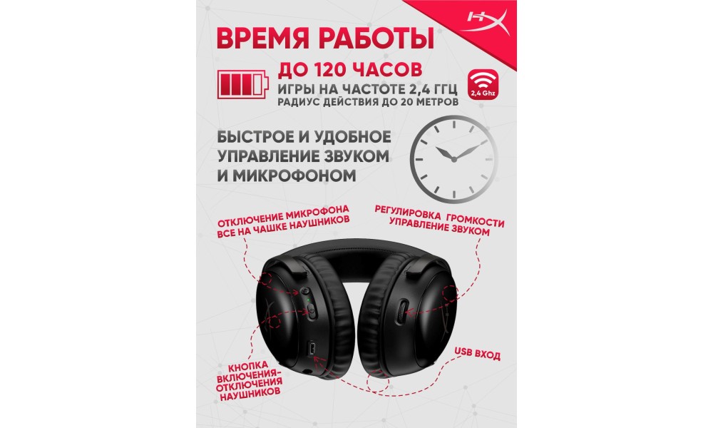 HyperX Cloud III Wireless Black оснащены продвинутой системой управления, которая включает в себя специальные кнопки для быстрой регулировки громкости и отключения микрофона. Эти кнопки расположены удобно и доступны, что позволяет быстро адаптироваться к изменениям в игровом процессе или общении.