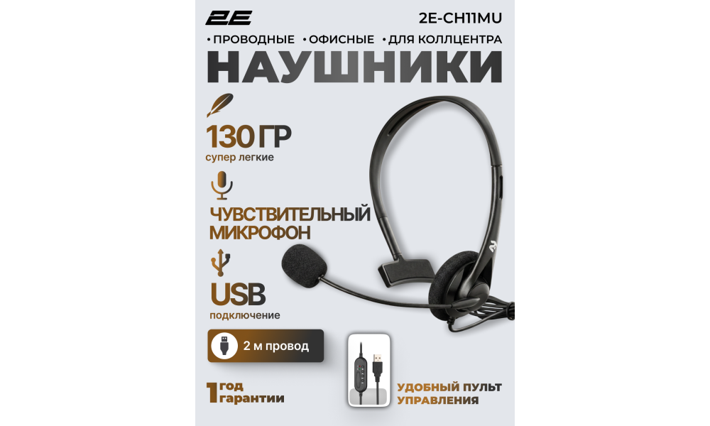 Легкая и удобная моно гарнитура 2E - лучшее решение для дома и офиса. Отличное звучание и комфорт в использовании. Чувствительный микрофон с возможностью регулировки, настраиваемое оголовье, удобный пульт управления громкостью и микрофоном на шнуре и мягкие амбушюры – все что нужно для Вашего комфорта на целый день. Благодаря легкости и компактности Вы всегда можете взять гарнитуру с собой. Гарнитура 2E станет незаменимым спутником для многочасовых видеозвонков, гейминга и прослушивания музыки.