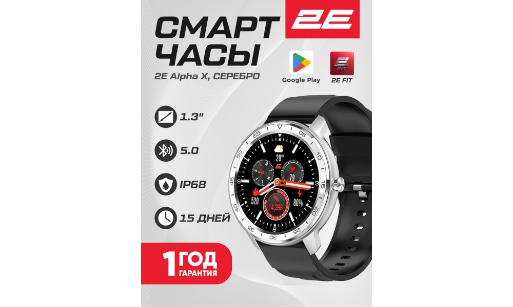 Смарт-часы 2E Alpha X 46 mm, Silver