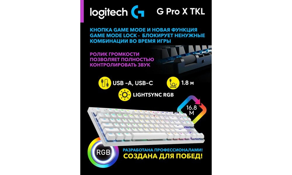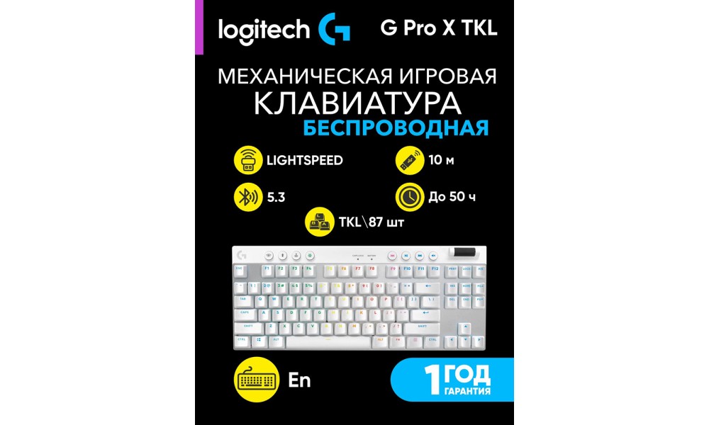 Встроенный аккумулятор обеспечивает до 60 часов работы без подзарядки, а прочная конструкция гарантирует долговечность даже при интенсивном использовании. Logitech G PRO X TKL LIGHTSPEED Gaming Keyboard — это сочетание профессионального качества, продуманной эргономики и безупречного стиля для настоящих геймеров.