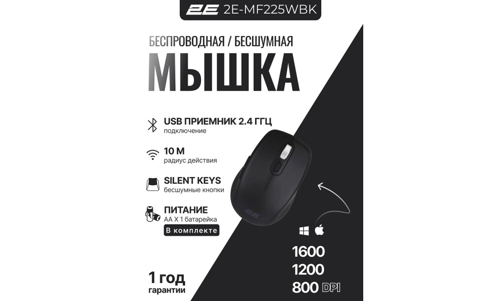 В целом, мышь 2E MF225 Silent WL BT Black представляет собой высококачественное, надежное и эффективное решение для работы с компьютером. Она обеспечивает отличную производительность, тихую работу и долгий срок службы, что делает ее идеальным выбором для любого, кто ищет оптимальное решение для работы с компьютером. Благодаря своему маленькому размеру, модель MF225 отлично подойдет для путешествий и мобильной работы.