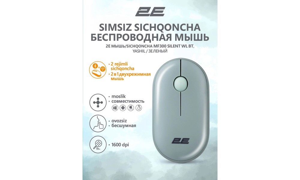 Беспроводная мышь 2E MF300 Silent BT Ashen green — это не просто аксессуар, а полноценный инструмент для повышения вашей продуктивности и удобства. Ее стильный дизайн, функциональные возможности и высокое качество делают её идеальным выбором для пользователей всех уровней. Если вы ищете надежное и красивое устройство, способное удовлетворить ваши потребности в работе и развлечениях, мышь 2E MF300 станет вашим лучшим решением. Откройте для себя новый уровень комфорта и стиля с 2E MF300!