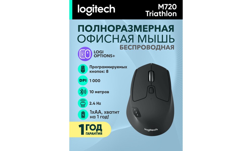 Благодаря оптическому светодиодному сенсору с разрешением 1000 dpi, M720 обеспечивает высокую точность и плавное перемещение курсора на любых поверхностях. Она подходит как для офисных задач, так и для работы с графикой или анализа данных.
