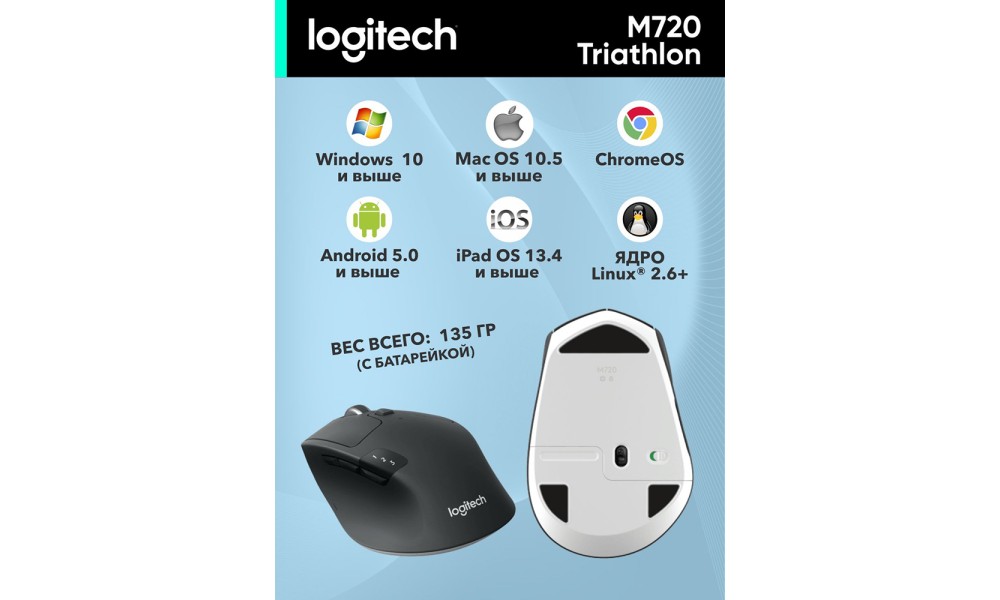 Беспроводная мышь Logitech M720 Triathlon Wireless Mouse, Black — это универсальное решение для тех, кто ценит комфорт, функциональность и возможность работать на нескольких устройствах одновременно. Эргономичный дизайн, выполненный из матового пластика с резиновыми вставками, идеально подходит для правой руки и обеспечивает удобный хват даже при длительной работе.