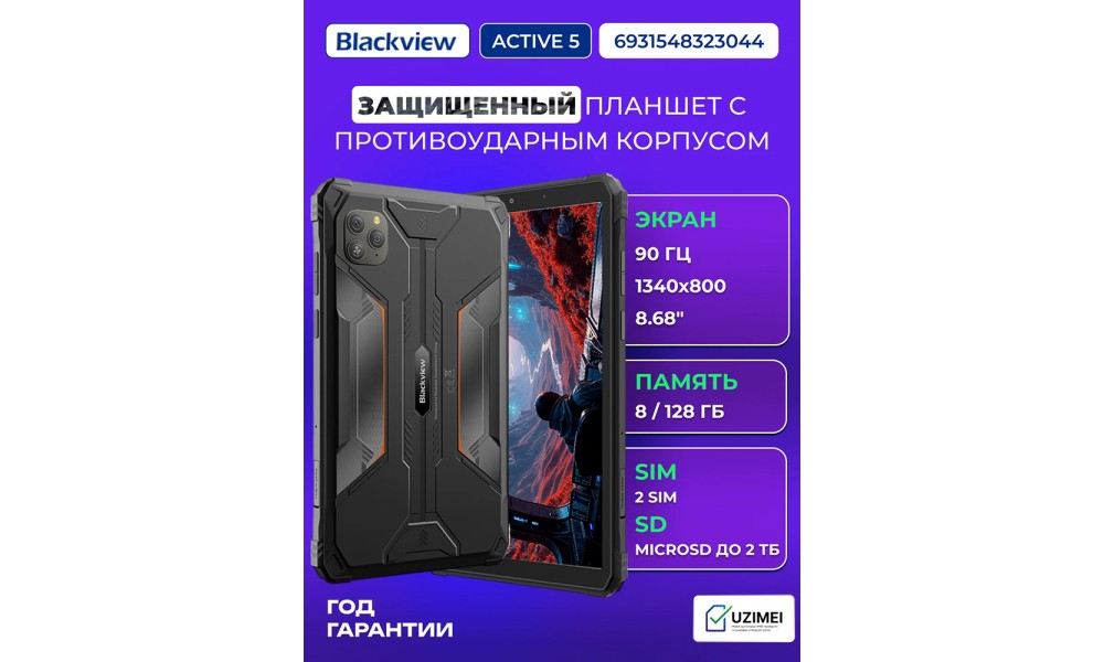 Планшет Blackview Tab Active 5 8/128GB — это мощное и универсальное устройство, созданное для активной жизни, работы и развлечений. Компактный, стильный и выносливый, он сочетает в себе производительность, современный дизайн и удобство использования в любых условиях.