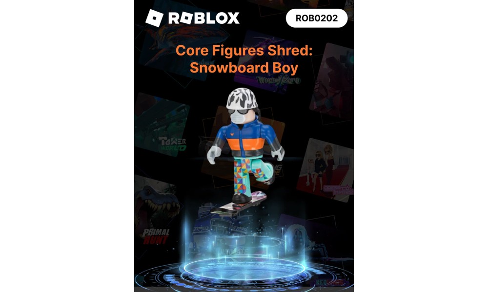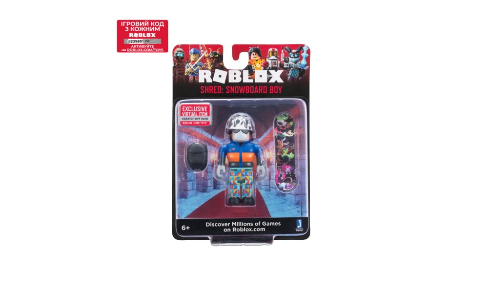 Комплектация: 1 фигурка Snowboard Boy, аксессуары, эксклюзивный код для получения предметов в игре «ROBLOX»
