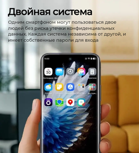 Одним смартфоном могут пользоваться двое людей без риска утечки конфиденциальных данных. Каждая система независима от другой, и имеет собственные пароли для входа