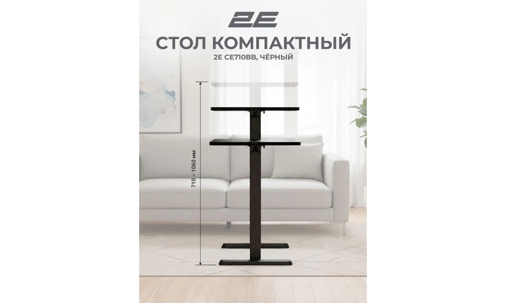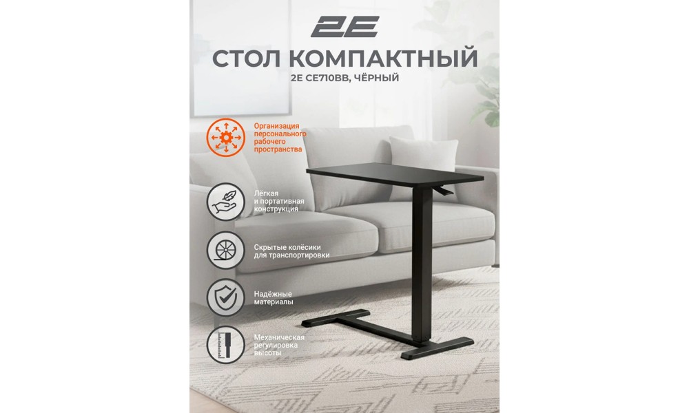 Благодаря компактным размерам столешницы (710 × 400 мм) и весу всего 10,2 кг, стол легко транспортировать и размещать в любом уголке. Ламинированное ДСП обеспечивает долговечность поверхности.