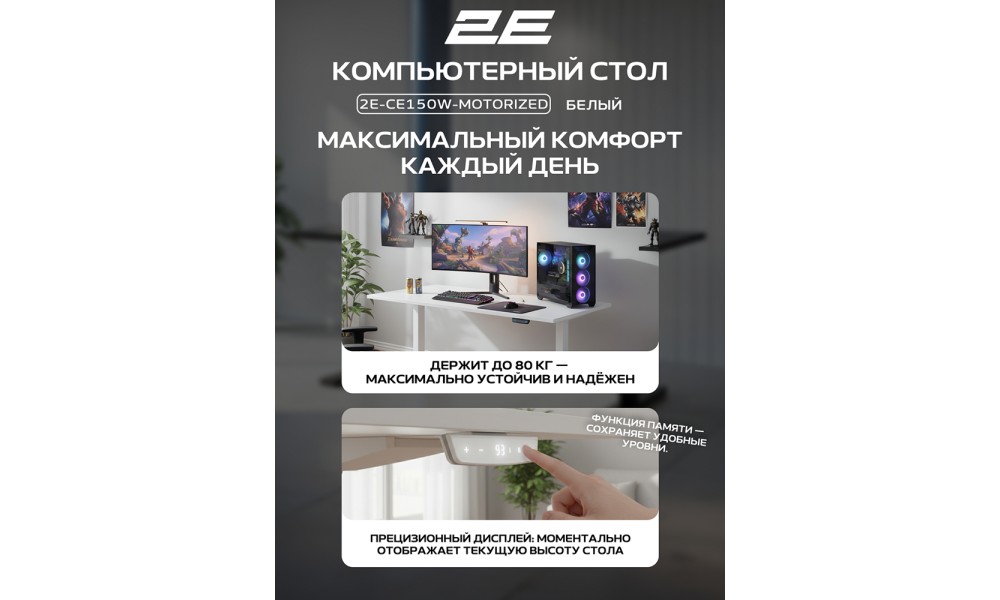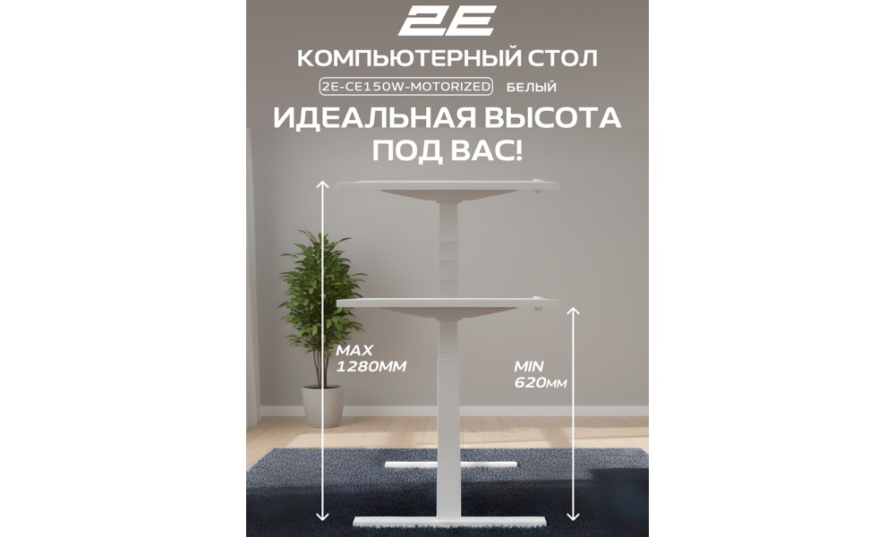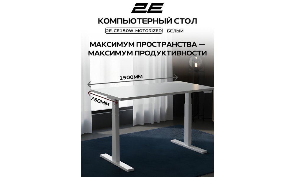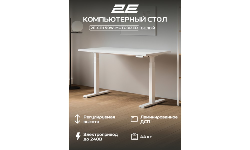 Стол компьютерный 2E-CE150W-MOTORIZED, Белый