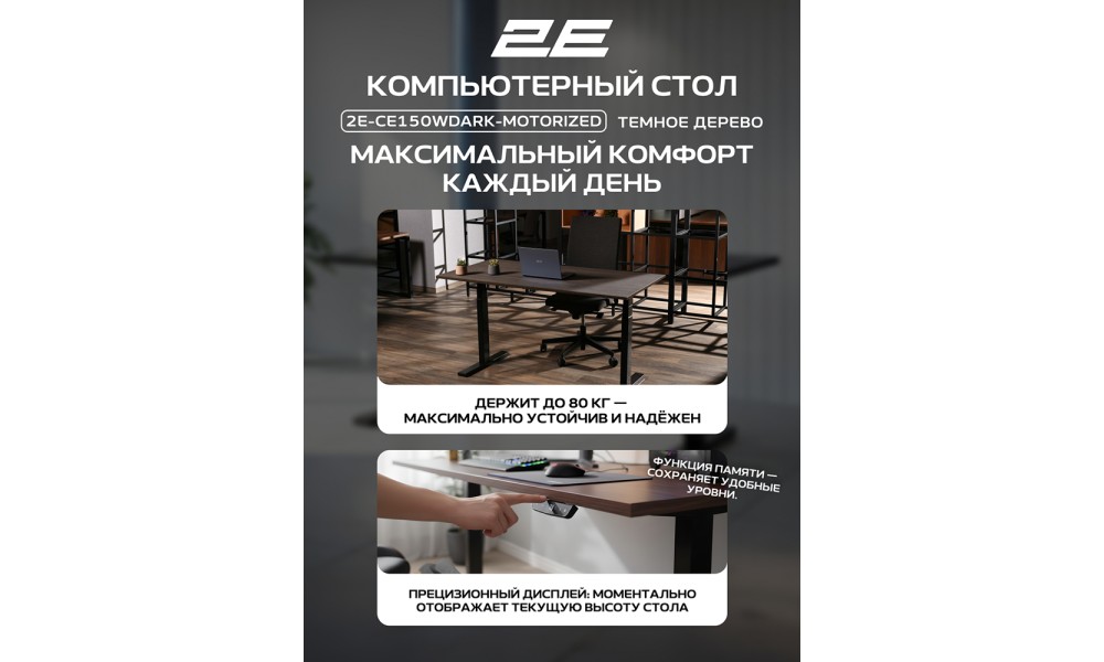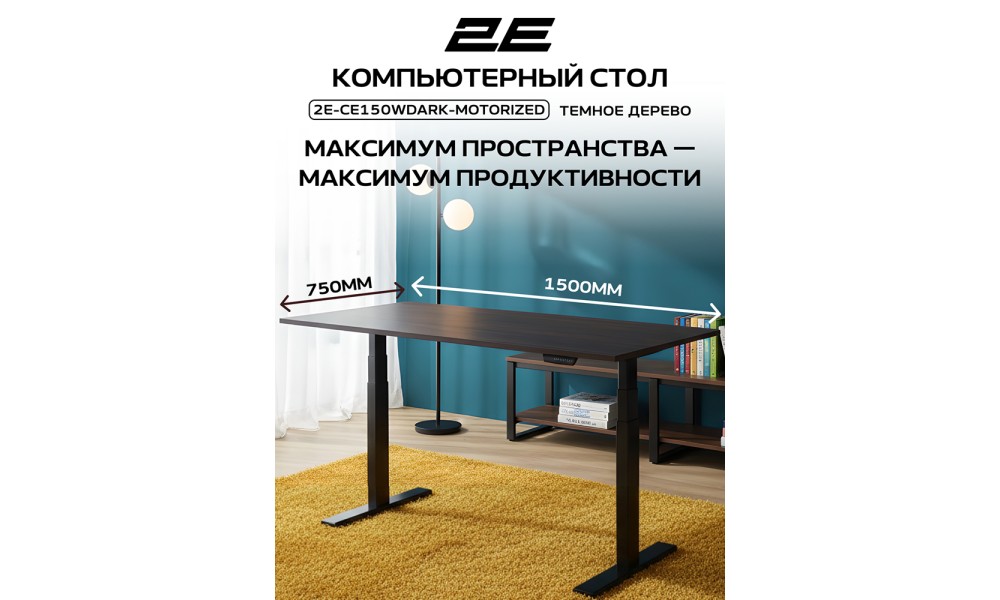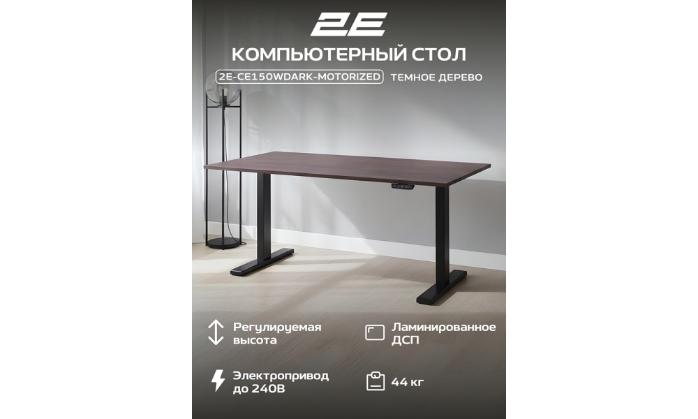 Стол компьютерный 2E-CE150WDARK-MOTORIZED, Wood Dark