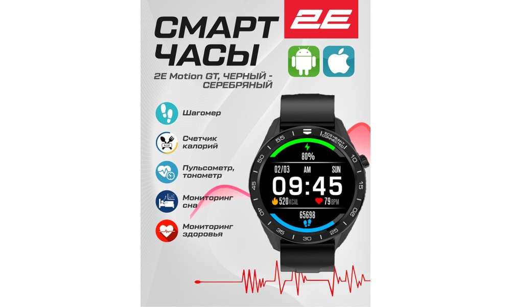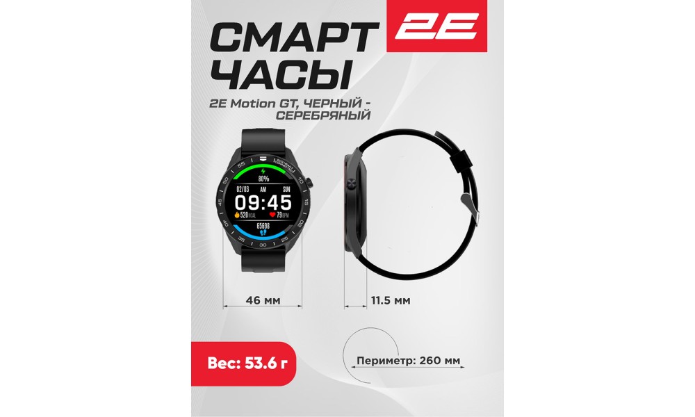 Смарт-часы 2E Motion GT 46 mm, Black-Silver