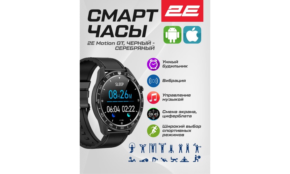 2E Motion GT оснащены большим круглым дисплеем 1,3ʺ с покрытием, устойчивым к царапинам. Корпус – из цинкового сплава с оригинальной полировкой, безель – из нержавеющей стали. На руке часы удерживает удобный износостойкий ремешок. Подойдут к одежде различных стилей.