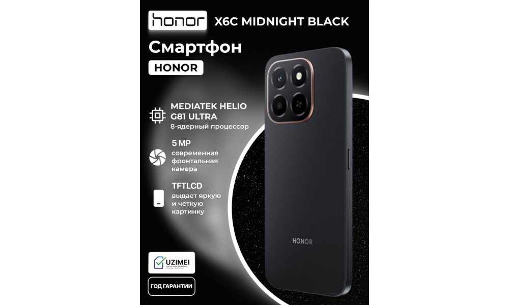 Откройте для себя новые грани комфорта и производительности с Honor X6c 6/128GB Midnight Black — стильным, надёжным и функциональным смартфоном, который идеально подойдёт как для повседневного использования, так и для развлечений.