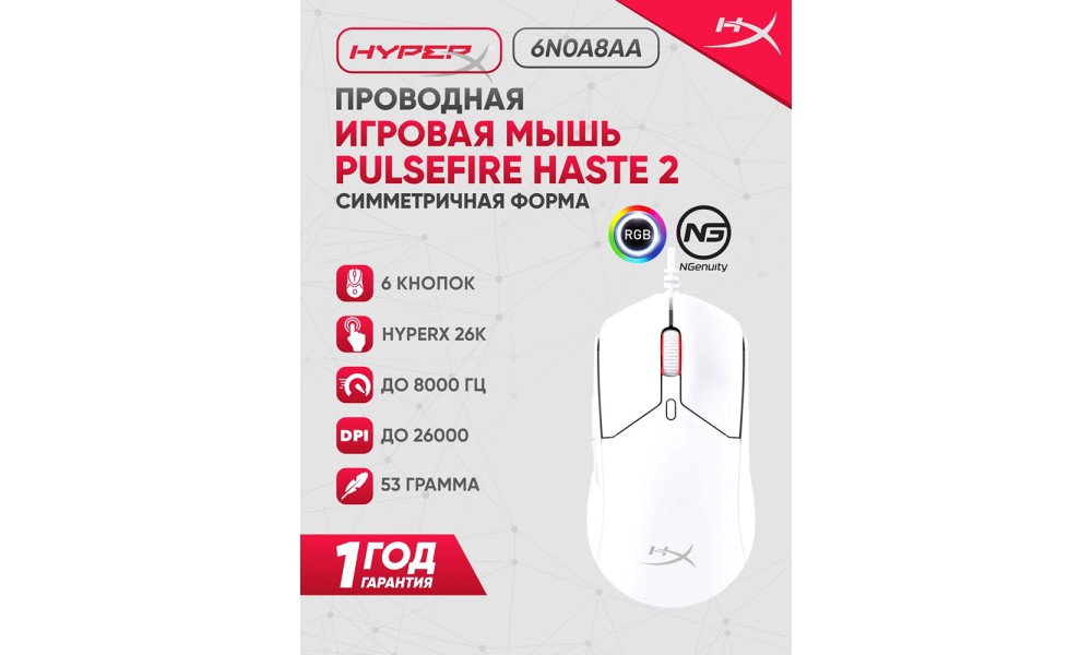 Игровая проводная мышь HyperX Pulsefire Haste 2, White