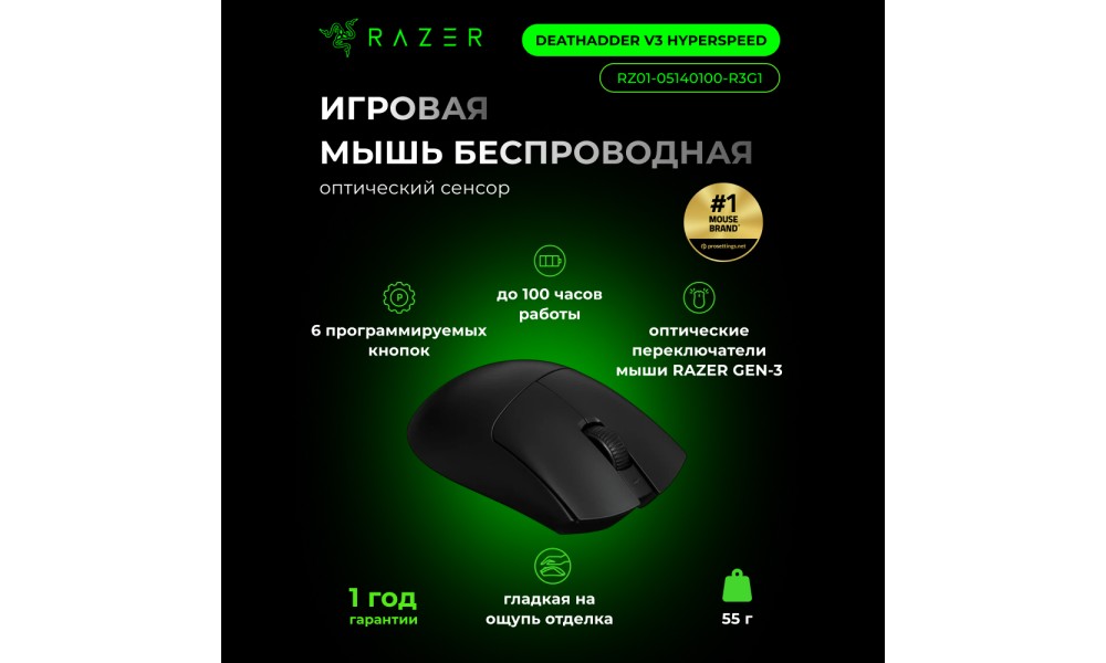 Razer DeathAdder V3 HyperSpeed — это легендарная форма и передовые беспроводные технологии в одном устройстве. Мышь создана для тех, кто ценит максимальную скорость отклика, точность движений и абсолютный комфорт при длительных игровых сессиях.