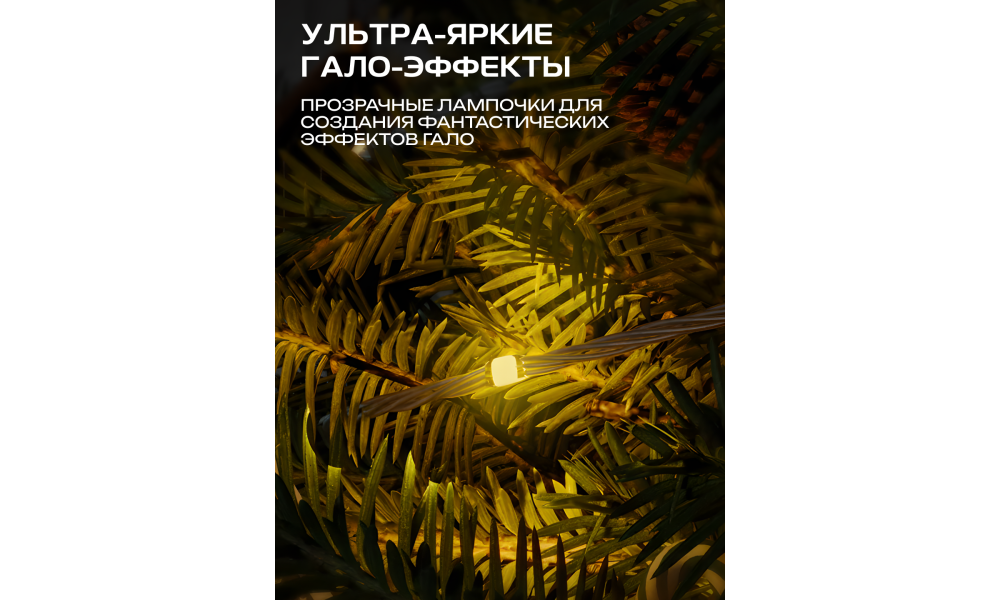 - Примечание: Версия 20 м рекомендуется для декорирования деревьев высотой 1,5-1,8 м. Кроме того, в длину гирлянды входит блок управления. Адаптер имеет класс защиты IP44.