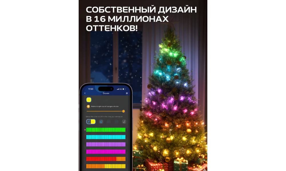 - Настройте свои праздничные вибрации: Технология Govee Uni-IC Control позволяет каждому светодиодному шарику независимо выбирать из 16 миллионов цветов.