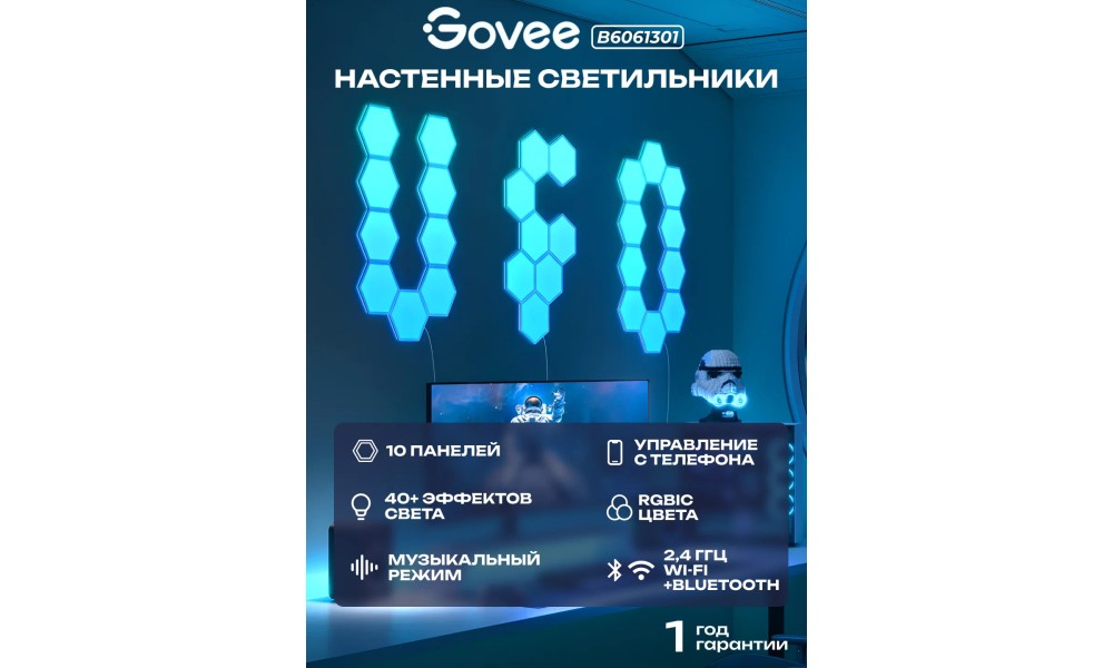 Набор настенных светильников Govee H6061 Glide Hexa Light Panels 10шт RGB, Белый