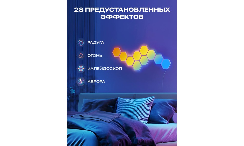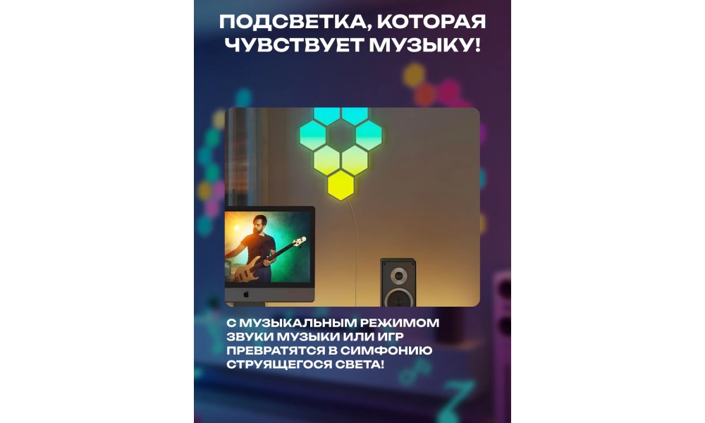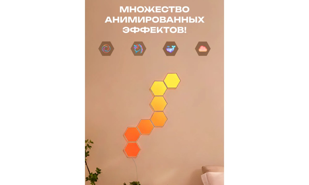 Благодаря уникальному прозрачному корпусу ваши панели будут светиться на стены с обратной стороны, добавляя флуоресцентное свечение в интерьер комнаты и игровой зоны, не имеющее аналогов. Каждая панель может отображать до 6 цветов одновременно, обеспечивая сверхплавное анимированное освещение.