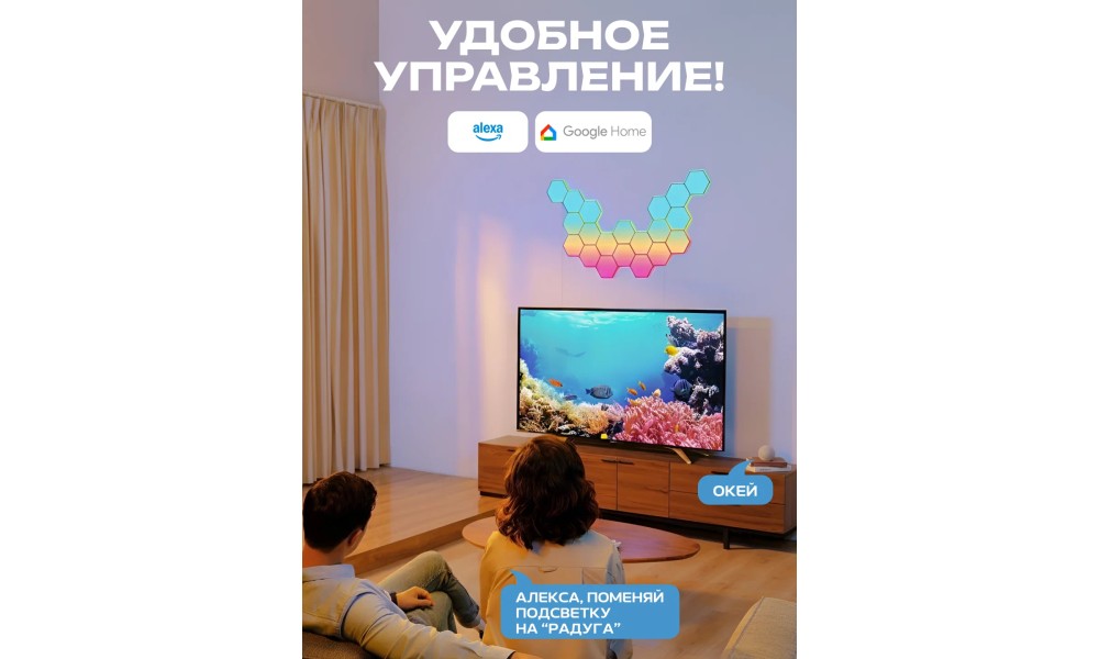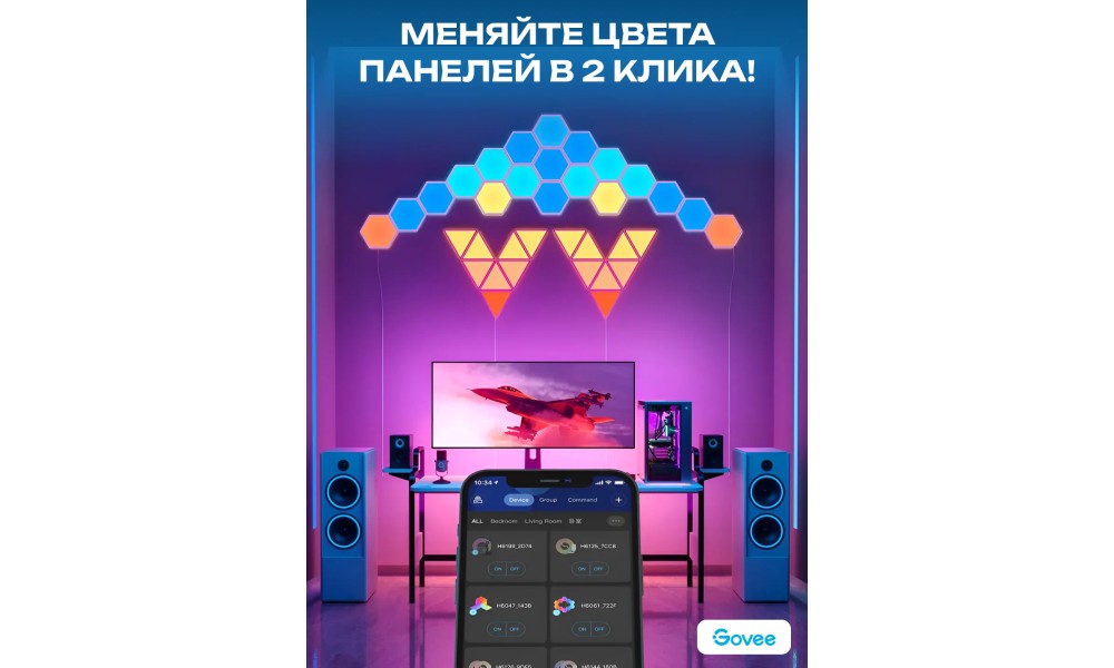 Легко регулируйте поток света, цвет и направление световых панелей. В режиме DIY в приложении Govee Home мы предлагаем множество вариантов, позволяющих создать собственное освещение. Выберите уникальные цвета и эффекты.