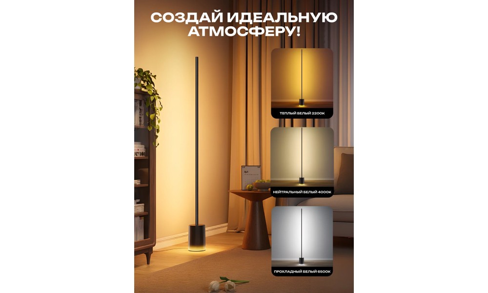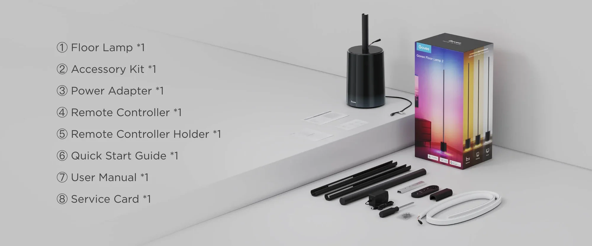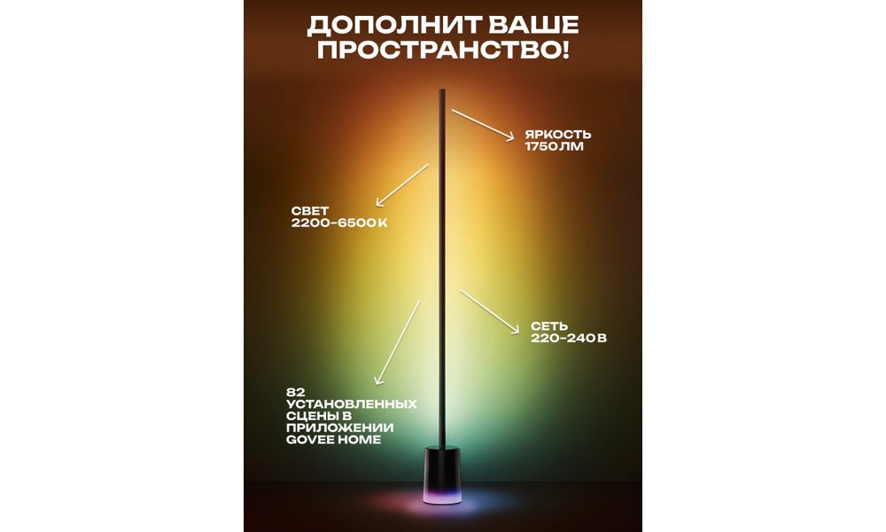 Торшер умный Govee H607C Floor Lamp 2, 1725Lm, RGBICWW, WI-FI/Bluetooth, Черный
